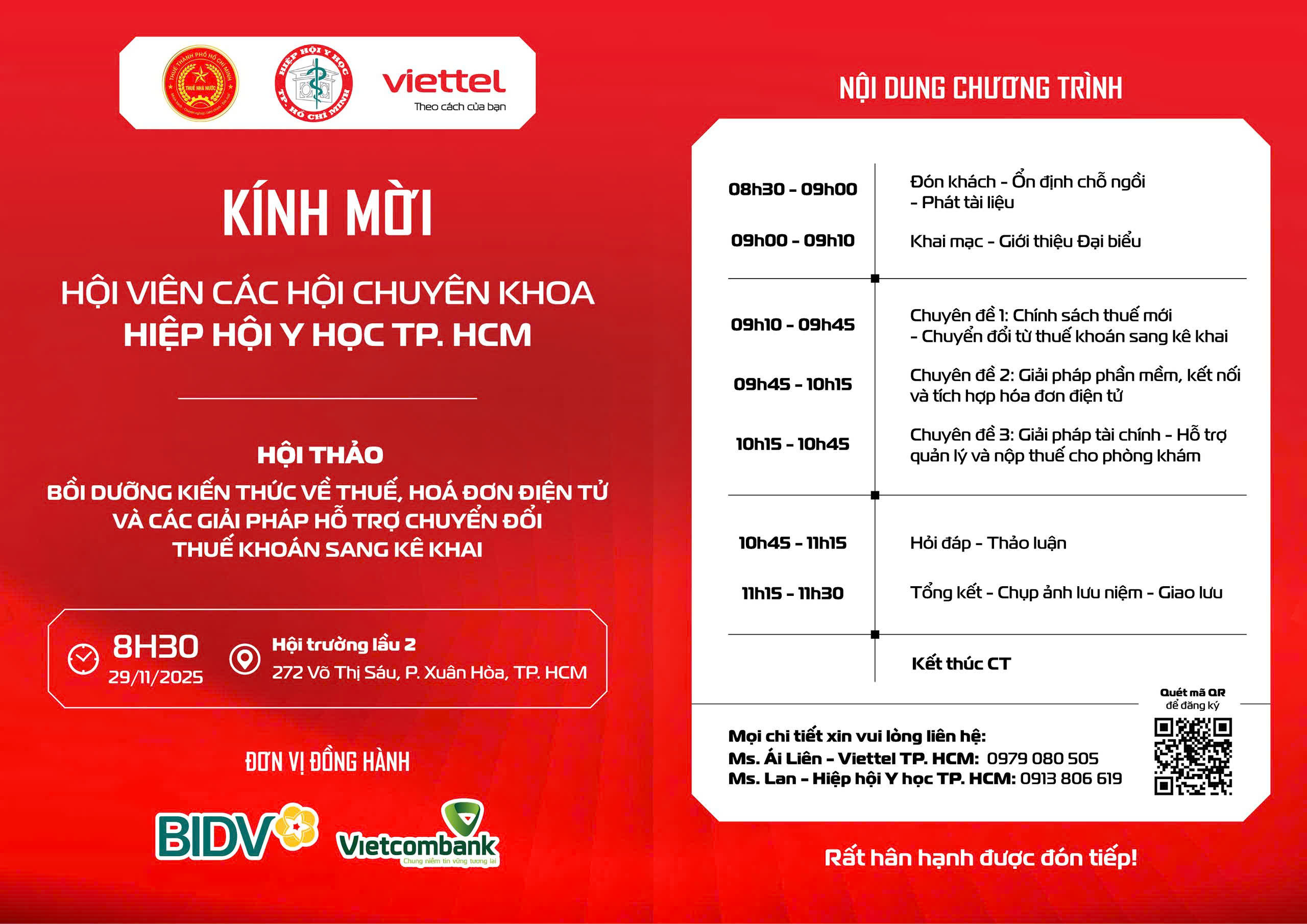 Kính mời Quý Hội viên tham dự Hội thảo chuyên đề đặc biệt do Hiệp Hội Y Học TP.Hồ Chí Minh – Thuế TP.HCM phối hợp cùng Viettel TP.HHCM tổ chức.